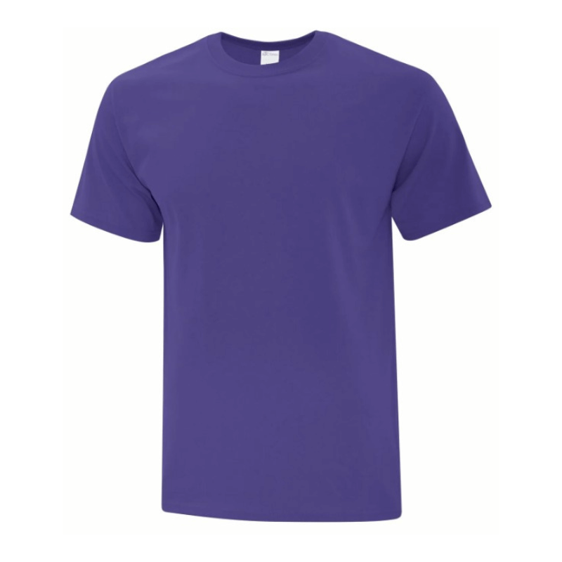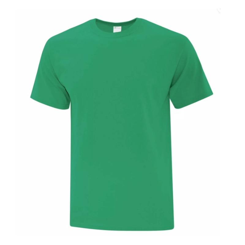 50% polyester / 50% cotton, minimum 180 gsm, crew neck, short sleeve, relaxed fit. 1 x 1 rib collar neckband. No Pockets.